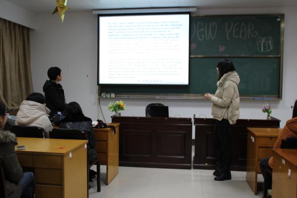 我系为进一步巩固首届中美合作专业同学的专业思想,明确他们未来的发展方向。2月3日下午在k1009,举办卫信中美合作班专业讲座,此次讲座由系主任沈清教授主讲,方雅青老师、曹舒奋老师、蔡芸兰老师与全体中美合作班同学参加。