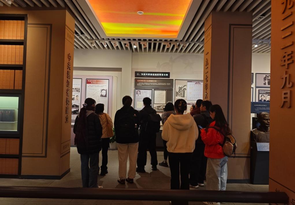 在讲解员的细致引导下,大家循着历史脉络,依次参观了 “民族独立人民解放的杭州篇章”“推进社会主义建设的杭州记忆”“走中国特色社会主义道路的杭州实践” 三大展厅。600 余件珍贵文物、3000 余份翔实史料,从新民主主义革命时期党组织的秘密斗争,到社会主义建设时期的艰苦创业,再到改革开放以来的创新突破,生动再现了杭州地方党组织带领人民砥砺前行的光辉历程。泛黄的书信、斑驳的革命实物与沉浸式场景相互交织,让大家仿佛穿越时空,真切感受革命先辈们坚定的理想信念与无私的奉献精神,深刻体悟 “星星之火,可以燎原” 的信仰伟力,每一处展陈都引发了在场师生的强烈共鸣,不时驻足凝视、交流感悟。